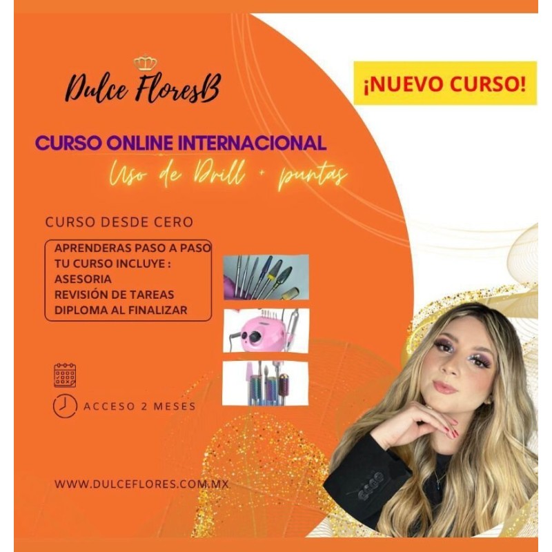 Curso online INTERNACIONAL Drill + puntas,Incluye 6 clases online,Este curso es internacional puedes tomarlo en cualquier parte del mundo que te encuentres,2 meses de curso online,-Al realizar tu compra te contactamos para que tengas acceso a tu curso , podrás ver tus prácticas a la hora que gustes , las cuales serán revisadas los días lunes o martes y al finalizar se te enviará tu diploma,Tu curso incluye asesoría durante el curso y revisión de tareas al realizar tu acceso se te proporciona lista de materiales,Para pagar con tarjeta de crédito a meses sin intereses solo son válidas tarjetas mexicanas, envíame mensaje por whatsapp: http://wa.me/523315494548